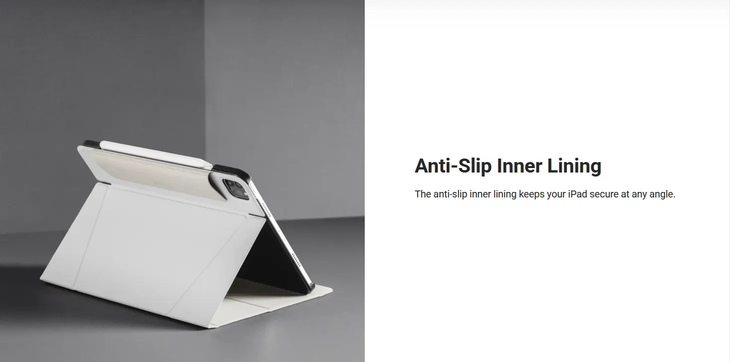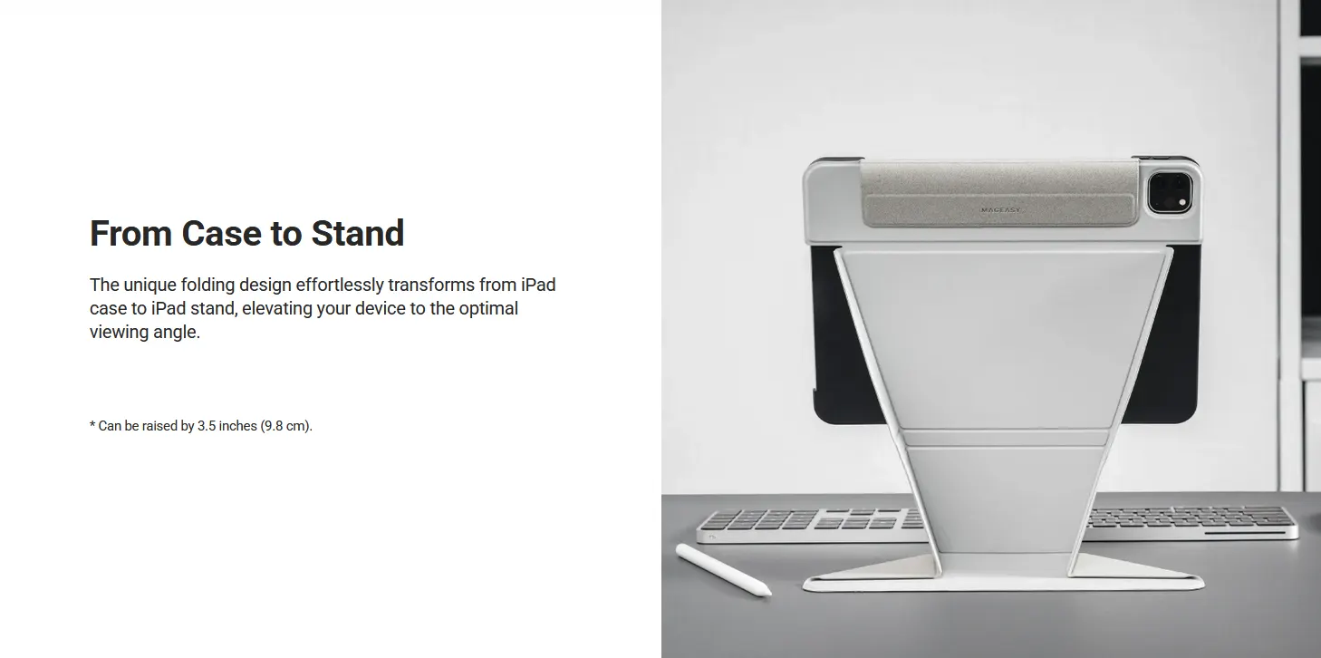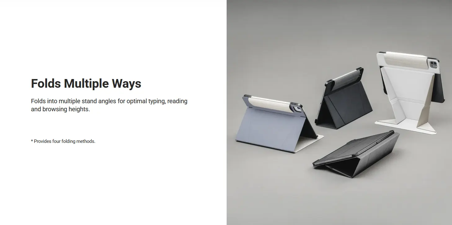 The LIFT Standing & Folding Folio iPad Case combines a unique stain-resistant cover with a sturdy PC backplate casing for all-over protection. The unique folding design not only elevates the iPad to an optimal angle for viewing, but also transforms instantly to multiple positions for different tasks. LIFT is the perfect combination of protection and convenience, elevating your iPad experience.