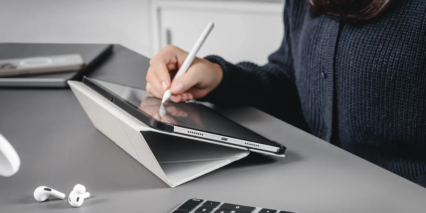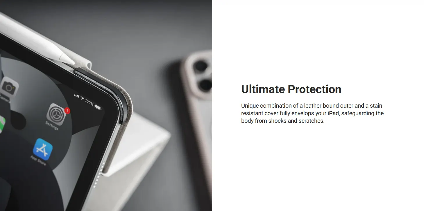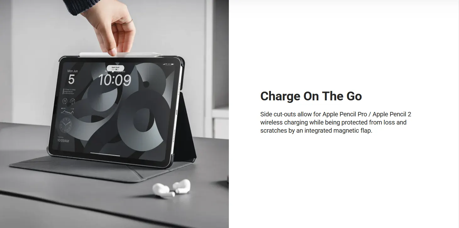 The LIFT Standing & Folding Folio iPad Case combines a unique stain-resistant cover with a sturdy PC backplate casing for all-over protection. The unique folding design not only elevates the iPad to an optimal angle for viewing, but also transforms instantly to multiple positions for different tasks. LIFT is the perfect combination of protection and convenience, elevating your iPad experience.